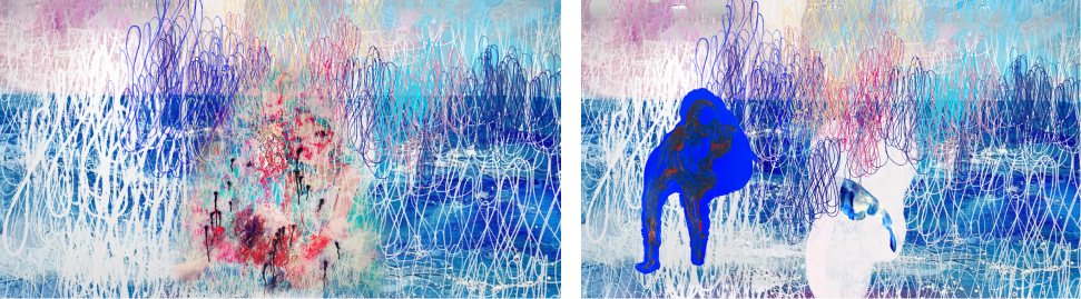 The gallery exhibition becomes a space without limits where we can explore our boundaries and relationship the algorithm.